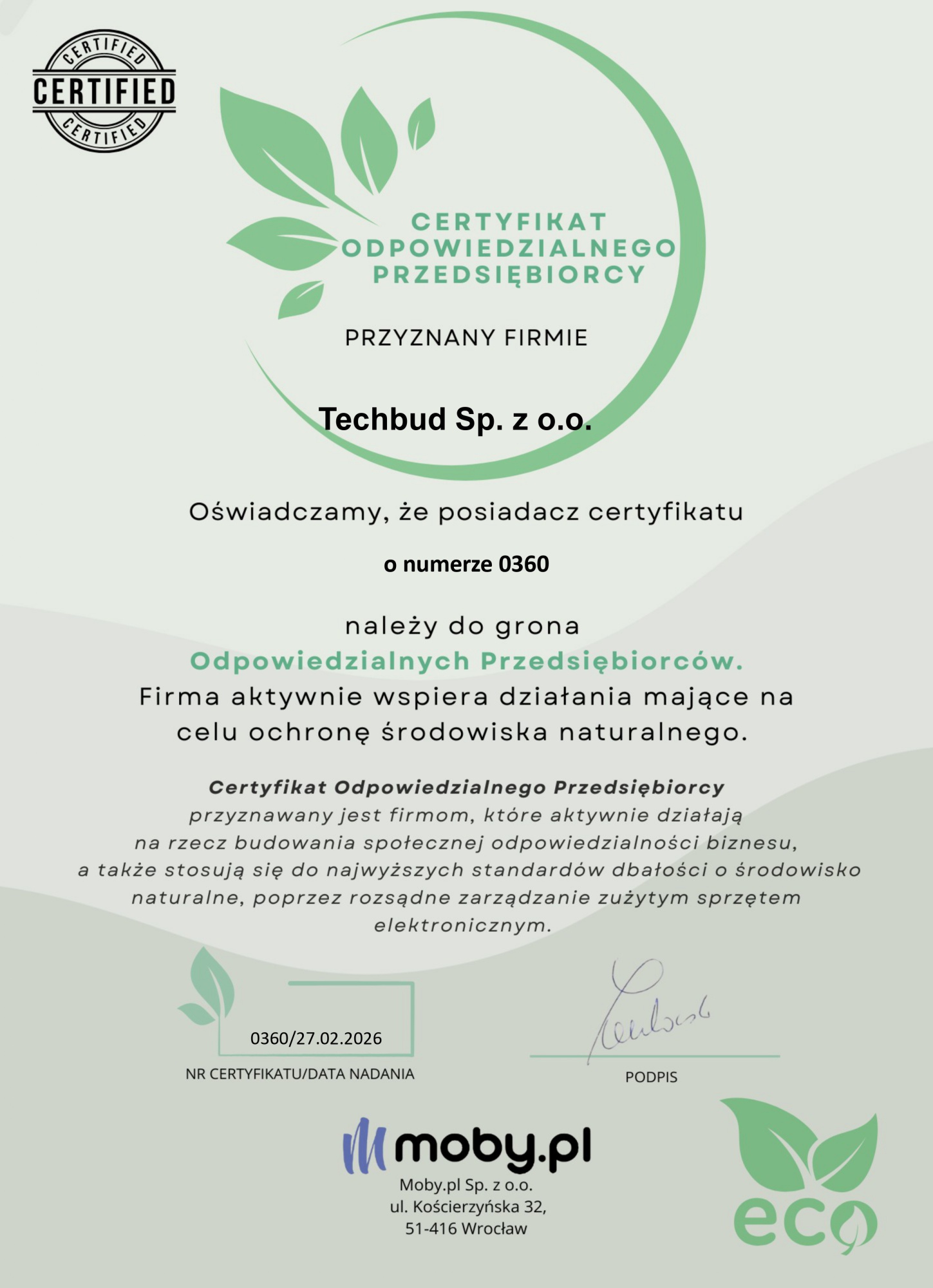 Techbud » Galeria zdjęć i certyfikatów » CERTYFIKATY, WYRÓŻNIENIA, REFERENCJE » Certyfikaty i wyróżnienia