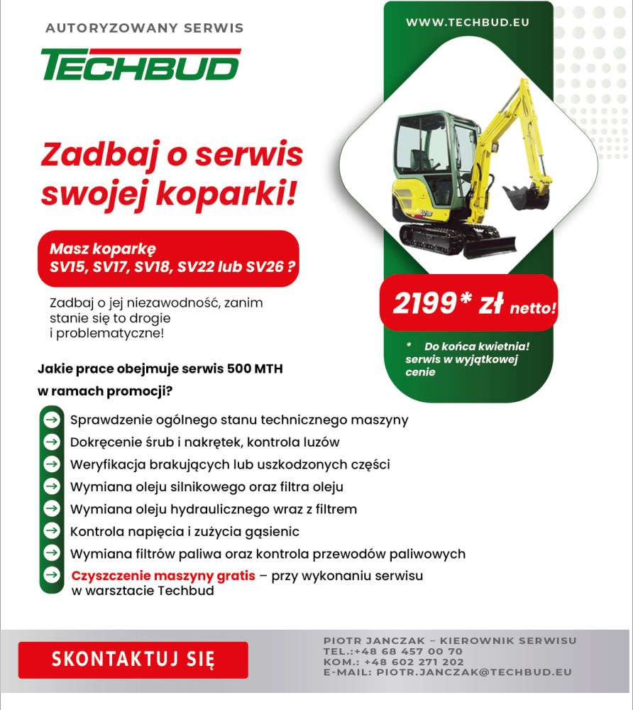 DO KOŃCA KWIETNIA pełny serwis koparki SV15, SV17, SV18, SV22 lub SV26 w WYJĄTKOWEJ CENIE – 2199 zł netto!