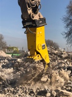 Szerokie, kątowe szczęki ułatwiają podnoszenie materiału wyburzeniowego, leżącego na gruncie, i umożliwiają szybki postęp prac przy sortowaniu prętów zbrojeniowych i betonu, a następnie rozdrabnianie nadgabarytów betonowych do dalszego kruszenia lub dla wypełniania nimi wykopów.
